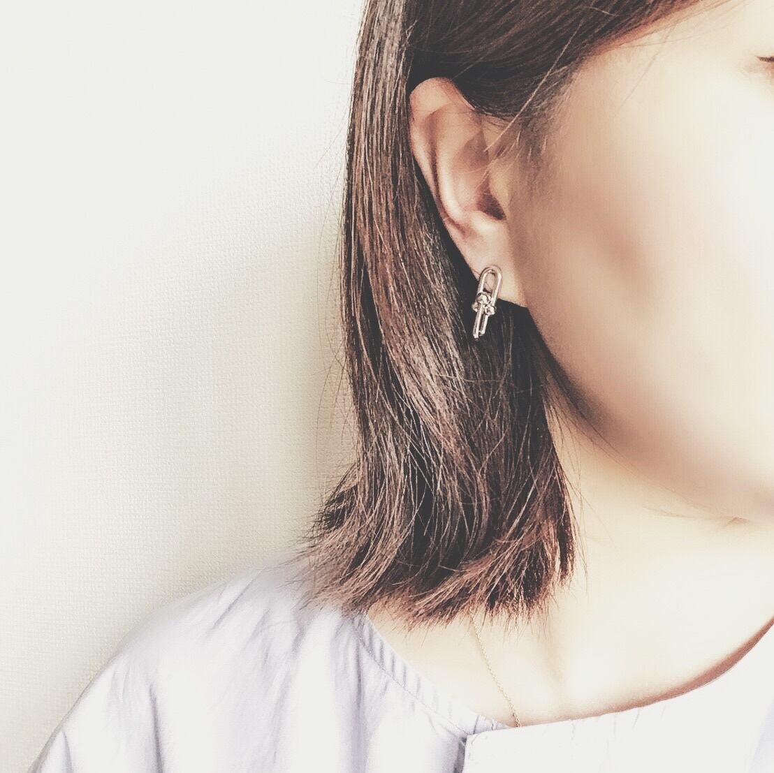クロスしたパーツがポイントのピアス。