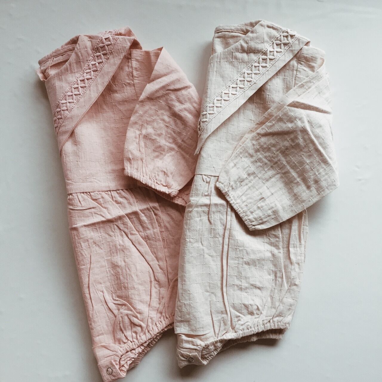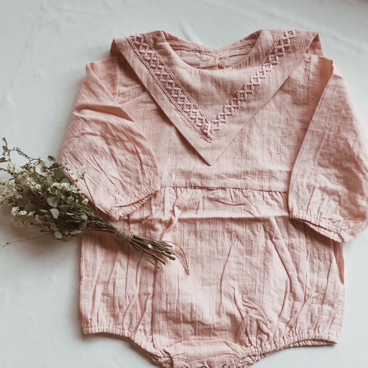 柔らかなカラーのレースセーラーカラーセットアップ。